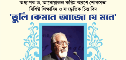 অধ্যাপক আনোয়ারুল করীমর স্মরণে শোকসভা বিশিষ্ট শিক্ষাবিদ ও সাংস্কৃতিক চিন্তাবিদ ভুলি কেমনে আজো যে মনে স্মরণ করবেন সুলতানা আফরোজ, কন্যা,প্রফেসর ড. আনোয়ারুল করিম যতীন্দ্রনাথ রায়,